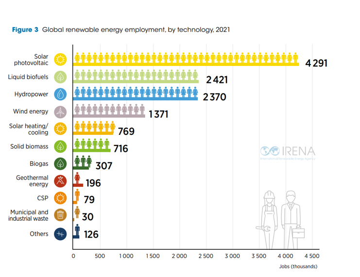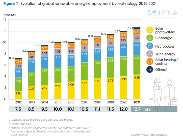 Worldwide employment in renewable energy reached 12.7 million last year, a jump of 700,000 new jobs in one year, despite the lingering effects of COVID-19 and the growing energy crisis, according to a new report.
