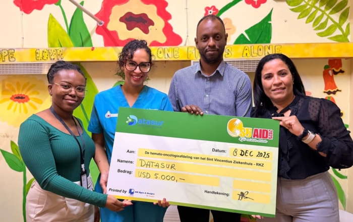 In het kader van het nieuwe SU-AID-project heeft Datasur onlangs de eerste donatie van USD 5.000,- gedaan aan de hemato-oncologieafdeling van het Sint Vincentius Ziekenhuis – RKZ. Met deze [...]